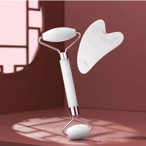 • 💎 Kit 2 en 1 : 1 pierre Gua Sha + 1 rouleau facial double embout